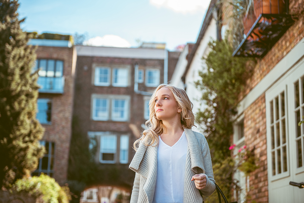 After a quick chat to introduce ourselves, we quickly got down to the photo shoot. As I’m no fashion blogger and this was my first ever shoot, I had no idea what to do with myself, but Laura gave me some useful directions. For instance she would ask me to walk down the street looking up at the houses, left and right, or she would ask me to stop and inspect a flower.