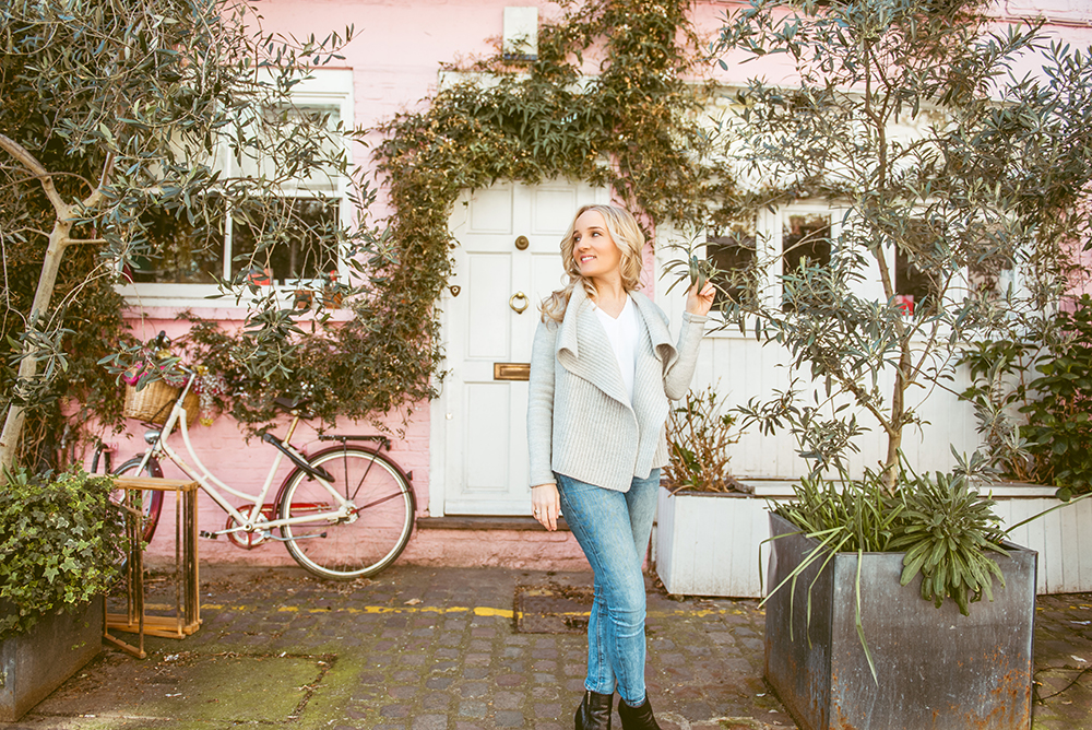 With my hair now looking bouncy and full of life it was time to head off for my photo shoot, which was booked for 10am to avoid the crowds. I met my photographer Laura in a stunning mews in Notting Hill, called St Lukes, which makes a regular appearance on Instagram feeds. London is full of these little quiet mews, which are basically rows of houses built on a pedestrian alleyway. St Lukes Mews boasts one of the prettiest houses in London – a pink house covered in foliage with a matching pink bicycle outside.