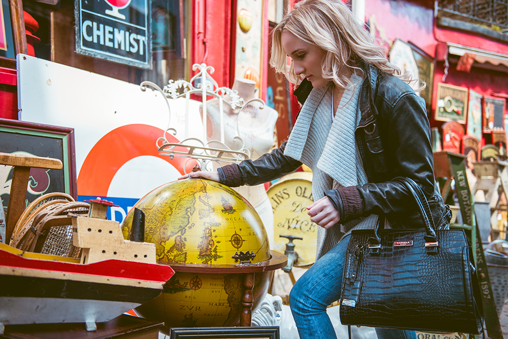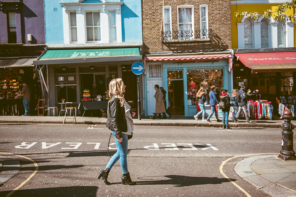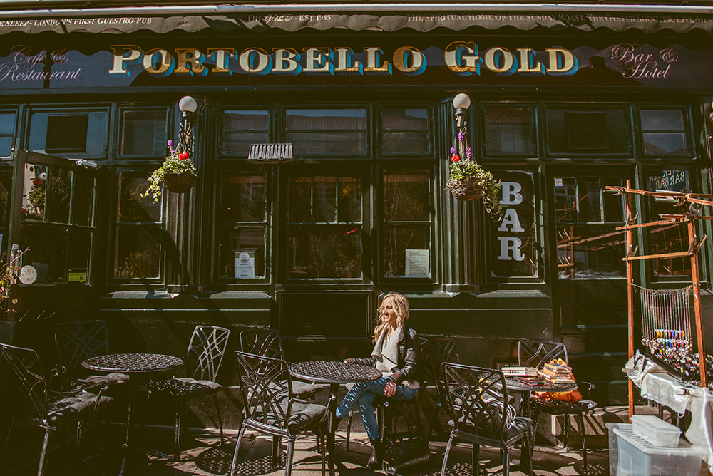Instantly I felt at ease and comfortable, even though I was having my photo taken in the street. From the mews we walked towards Portobello Road, stopping to take pictures in front of more colourful houses. I soon forgot that people could see me, since we were having so much fun chatting and looking at the surroundings. We strolled along Portobello Road market, where I stopped to look at some stalls while Laura snapped away on her camera. With so many antiques and trinkets for sale on the market stalls, it made for some great pictures.